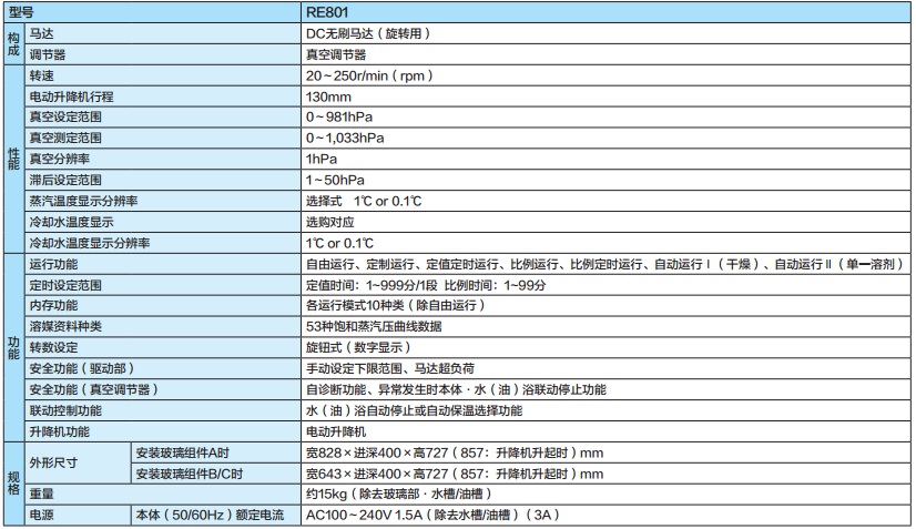 ● 旋轉數、真空度、蒸汽溫度為數字設定,數字顯示。