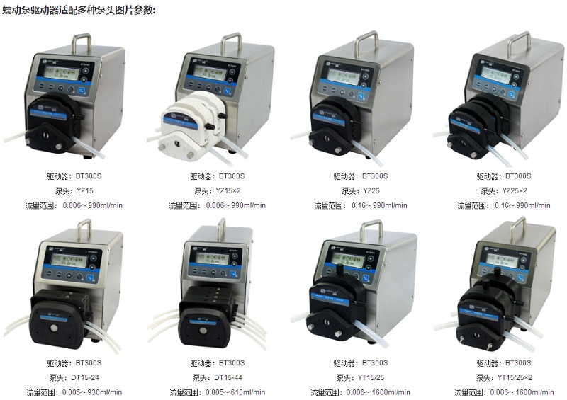 BT300S調(diào)速型蠕動泵流量范圍0.006~1600毫升/分鐘;工作轉(zhuǎn)速0.1-350轉(zhuǎn)/分鐘;專用的LF-LCD-OS軟件系統(tǒng),中英文顯示,簡單方便;具有轉(zhuǎn)速調(diào)節(jié),正反,啟停,全速(清洗)等基本功能;專用的“簡易分裝鍵”,功能強大,可實現(xiàn)定時定量,連續(xù)分裝,流量測試等功能。