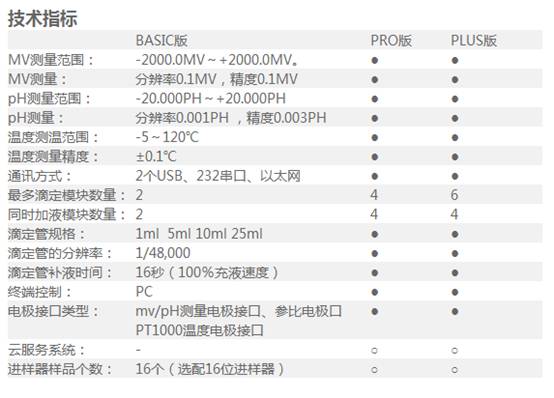 MEAS:測(cè)量pH/mV/T、CAL:pH校正、SET設(shè)定終點(diǎn)模式、MET等量滴定、MET等量滴定二階微商法(測(cè)氯離子)、DET動(dòng)態(tài)滴定,用量:按預(yù)設(shè)定的固定量進(jìn)行滴定,清洗:滴定結(jié)束后自動(dòng)清洗。