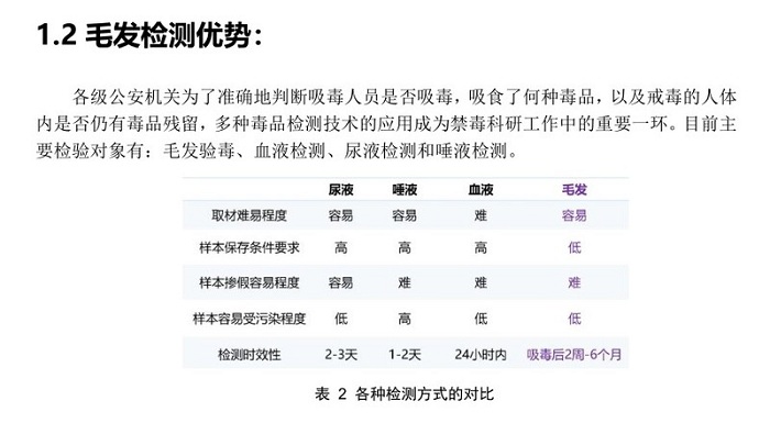 追溯期長:利用毛發(fā)最長可檢測 3-6 月內(nèi)可疑人員體內(nèi)是否含有毒品。