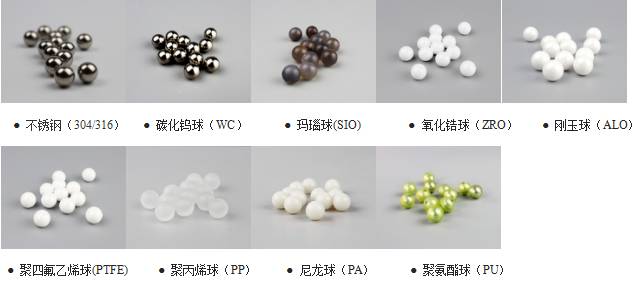 不銹鋼、瑪瑙、氧化鋯、剛玉、尼龍、聚四氟乙烯可選 |
