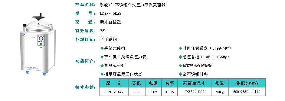 | 75L全不銹鋼立式壓力滅菌器(自控) |