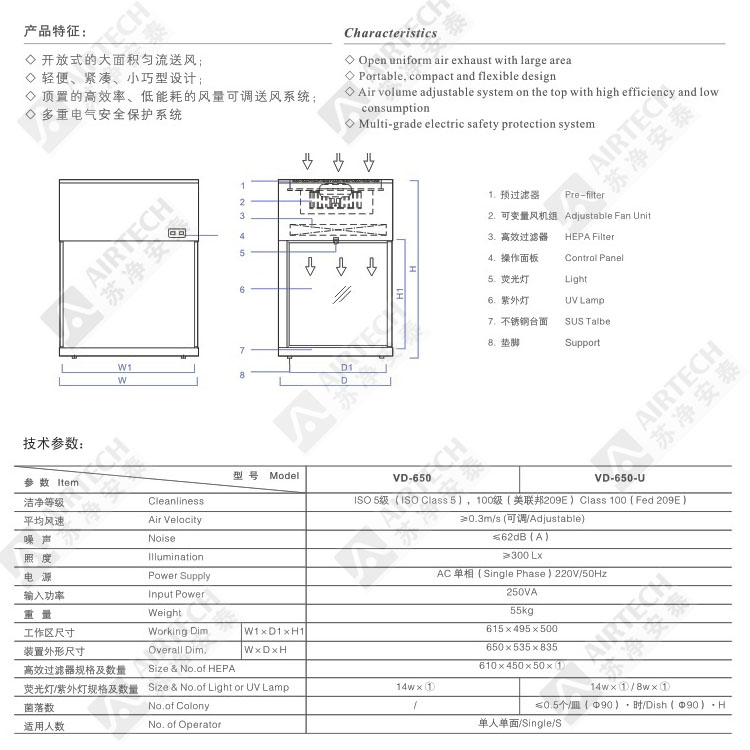 蘇凈安泰自70年代研究開發(fā)、設計制造潔凈工作臺歷史悠久,產(chǎn)品榮獲國家銀質(zhì)獎,參與制定潔凈工作臺國家標準。1994年與日本AIR TECH公司合資后,與其技術同步共享,使?jié)崈艄ぷ髋_系列產(chǎn)品的品質(zhì)提升到國際先進水平,型號規(guī)格不斷增多以滿足各領域用戶的不同需求。 潔凈工作臺以空氣流向可分為水平層流和垂直層流兩大形式,在這兩大形式下形成了標準型、醫(yī)用型、新穎型、分離套入型、桌上型、生物型等9個品種、30個型號規(guī)格。根據(jù)不同的功能與特點,分別應用于醫(yī)療衛(wèi)生、電子機械、儀器儀表、食品制藥、植物組培、生物工程、畜牧獸醫(yī)、大專院校等領域和各類實驗室。 |