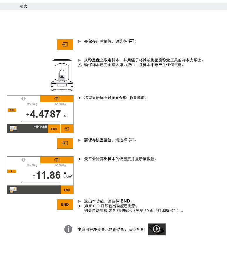 天平精度為0.1mg, 密度顯示精度為0.001g/cm3