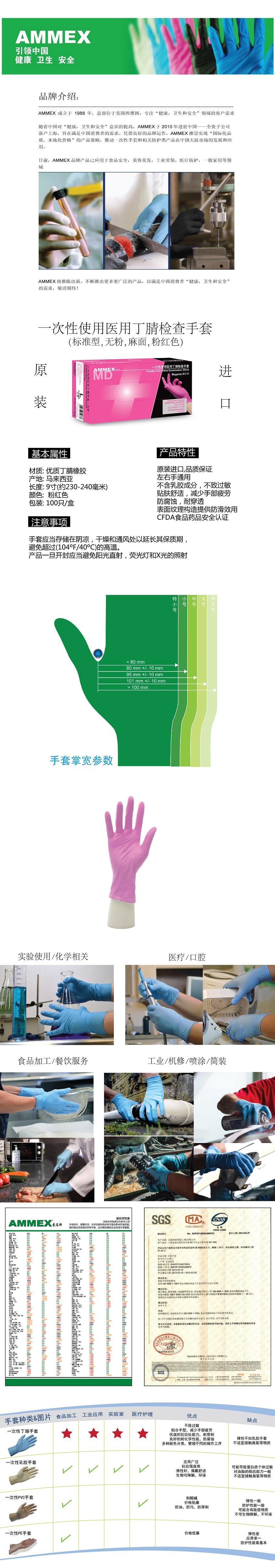CFDA食品藥品安全認證產(chǎn)品。丁腈材質(zhì),不含乳膠成分,不致過敏。采用超薄技術(shù)精制而成,貼膚舒適,減少手部疲勞;同時擁有良好的拉伸強度和耐穿刺性能。玫紅色深受兒童和女性歡迎。
