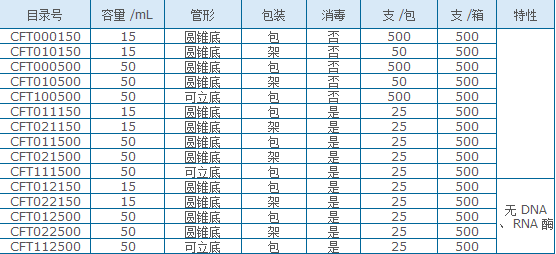 ◎ 2種容量規(guī)格可選:15和50mL,2種管底類型可選:圓錐形和可立式底