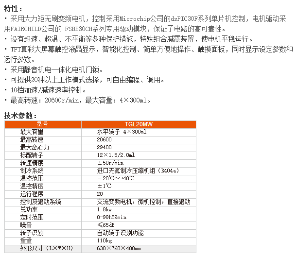 | 最大容量:4×250ml 最大轉(zhuǎn)速(r/min):20600 |