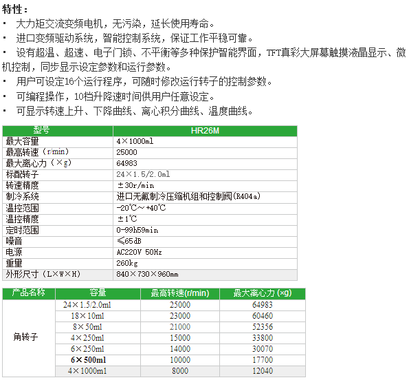 產(chǎn)品名稱:HR26M落地式高速冷凍離心機(jī)