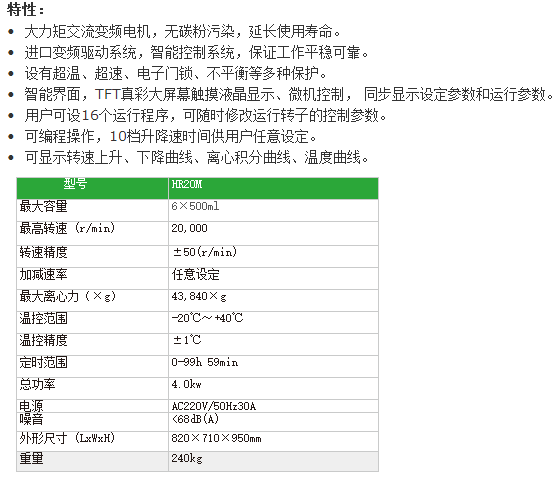 最大容量:6×500ml  最大轉(zhuǎn)速(r/min):20000