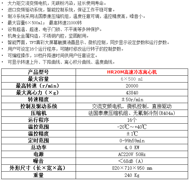 產(chǎn)品名稱:HR20M高速冷凍離心機(jī)
