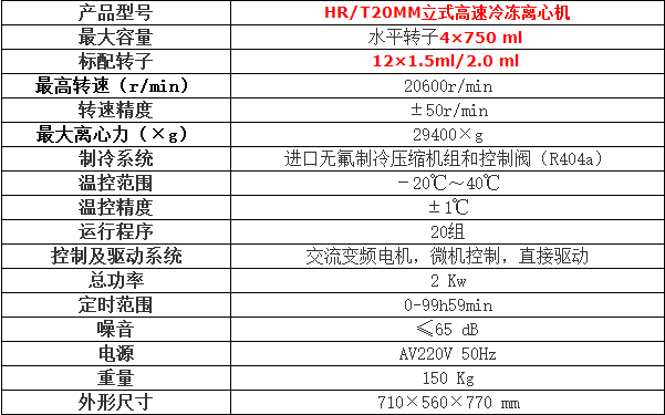 產(chǎn)品名稱:HR/T20MM立式高速冷凍離心機(jī)