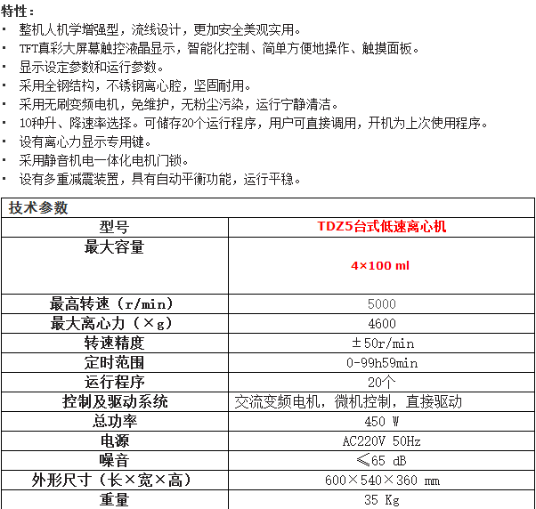 | 最大容量:4×100ml 最大轉(zhuǎn)速(r/min):5000 |