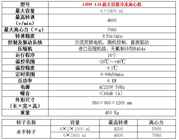 產(chǎn)品名稱:LRM-12L超大容量冷凍離心機(jī)