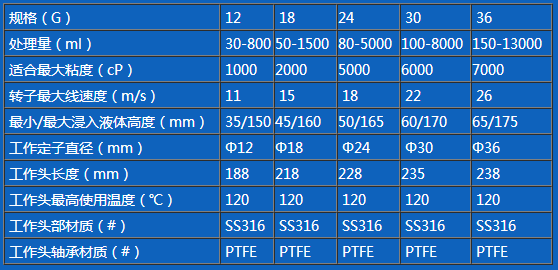 分功均質(zhì)工作頭選型表: