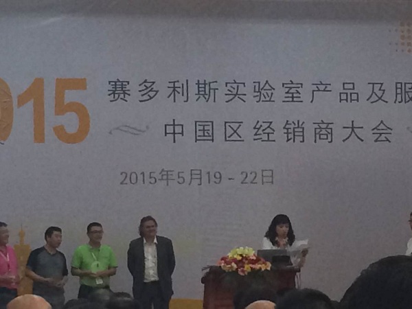 左3為授科代表,左2為賽多利斯亞太區(qū)副總裁Eirik先生,左1為中國(guó)區(qū)銷(xiāo)售總監(jiān)Lily在宣布獲獎(jiǎng)名單