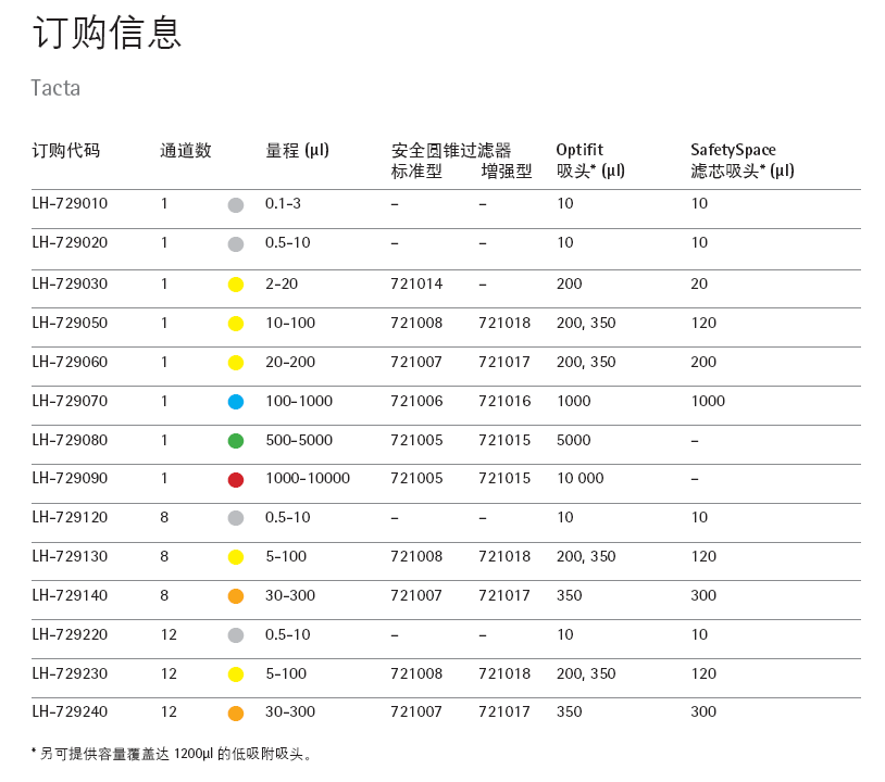 • 單通道型號涵蓋了 0.1 µl- 10 000 µl 的量程,多通道型號量程覆蓋 0.5 µl – 300 µl