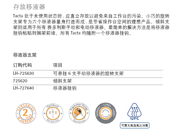 授科訂貨號:賽多利斯Tacta手動移液器