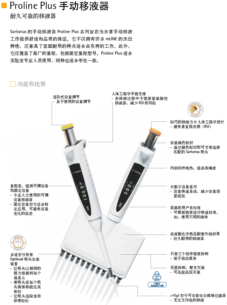 賽多利斯百得Proline Plus 8道移液器 0.5-10ul,整支消毒