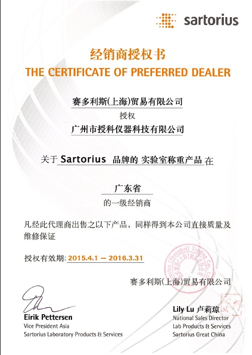 我們是德國(guó)賽多利斯華南地區(qū)銷(xiāo)量最大的合作伙伴,廣東省官方授權(quán)一級(jí)代理商。還負(fù)責(zé)賽多利斯的售后服務(wù)工作。是德國(guó)賽多利斯產(chǎn)品全國(guó)銷(xiāo)售前三強(qiáng)。比較擅長(zhǎng)技術(shù)方面的服務(wù),以及賽多利斯應(yīng)用培訓(xùn)。專(zhuān)業(yè)一直是授科的亮點(diǎn),這一點(diǎn)得到了華南區(qū)客戶(hù)的廣泛認(rèn)可,授科承諾所售的一切產(chǎn)品均為正品真貨,服務(wù)有保障。多年來(lái)我們?yōu)榭蛻?hù)解決了很多技術(shù)問(wèn)題,甚至是稱(chēng)量方面的技術(shù)難題。近期比較典型的就是哈爾濱大學(xué)深圳研究院PM2.5百萬(wàn)分之一天平的濾膜稱(chēng)重裝置的研發(fā),解決了客戶(hù)一直無(wú)法穩(wěn)定稱(chēng)量彎曲的特氟龍吸附膜的問(wèn)題,保證科研項(xiàng)目的順利開(kāi)展。