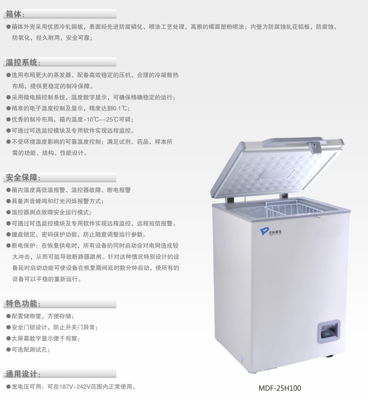 產(chǎn)品型號(hào):-25/-40℃低溫保存箱 MDF-25H100