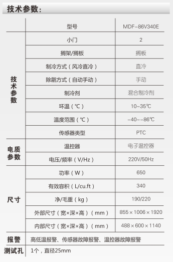 產(chǎn)品型號:-86/-130℃超低溫保存箱 MDF-86V340E