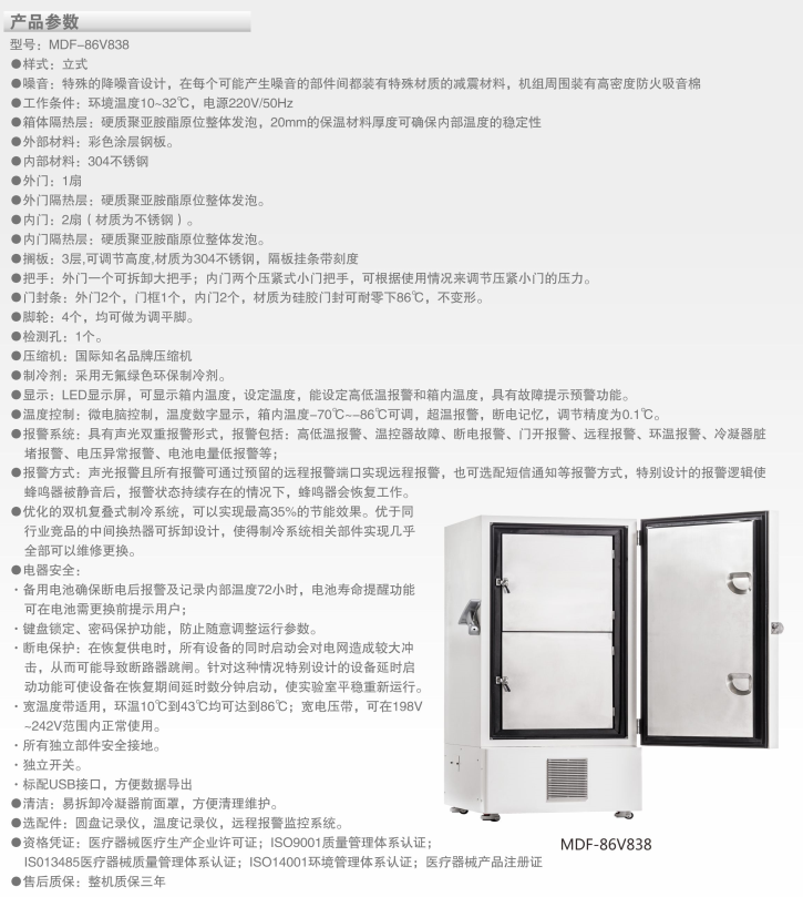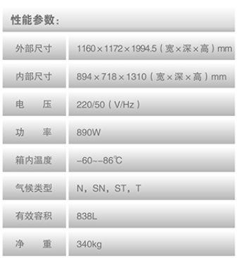 微電腦控制,箱內(nèi)溫度-70~-86℃可調(diào),超溫報(bào)警,斷電記憶,調(diào)節(jié)精度為0.1℃;