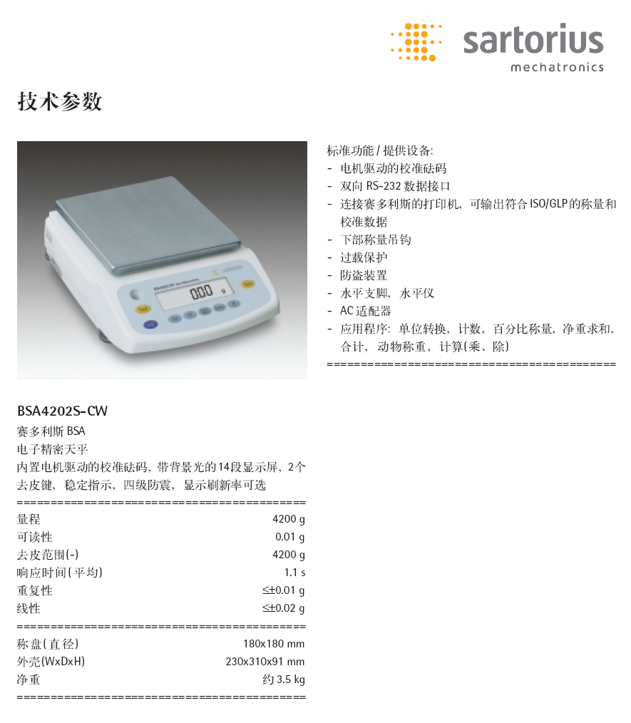 賽多利斯BSA4202S-CW精密電子天平(內(nèi)校)