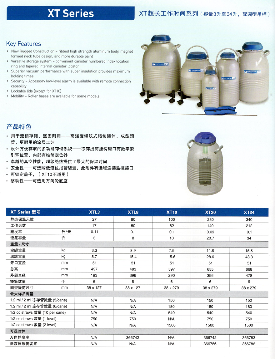 > 泰萊華頓 XT系列液氮罐(容量3-34升,配圓形吊桶)