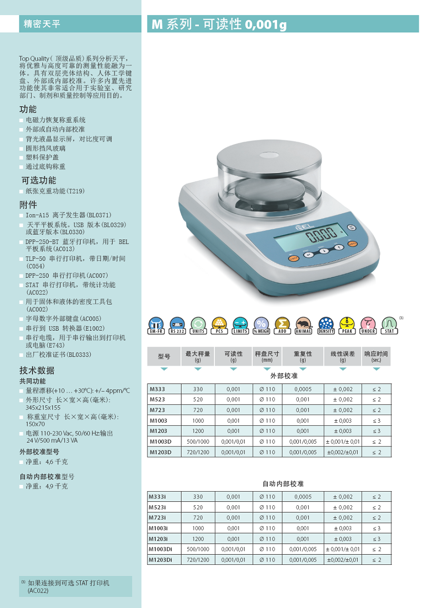 | 意大利倍爾M1203Di千分位內校天平,720g/1200g, 0.001g/0.01g |