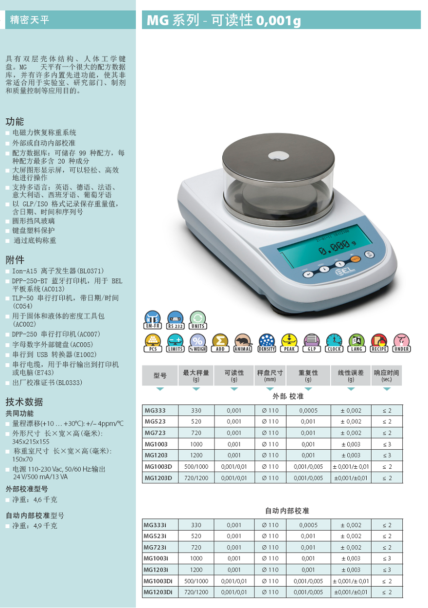 | 意大利倍爾MG223千分位外校精密天平,0.001, 220g |