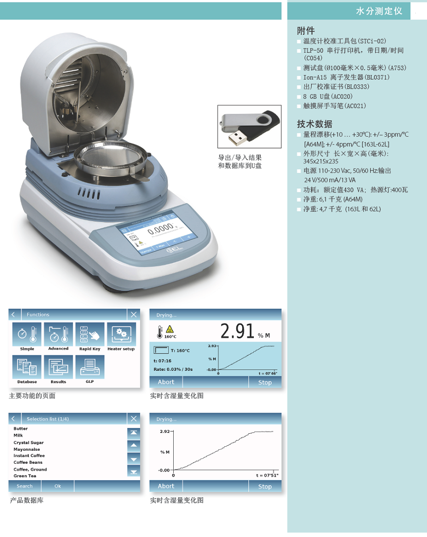 這意味著更高的效率、生產(chǎn)力和互動(dòng)性。雙層殼體結(jié)構(gòu)保護(hù)水分測(cè)定儀的核心:本設(shè)備有一層鋁質(zhì)內(nèi)殼和一層復(fù)合塑料外殼。測(cè)定儀內(nèi)置眾多板載功能,可以使用支持多達(dá) 6 種操作語(yǔ)言的工具包校準(zhǔn)內(nèi)置溫度計(jì),并擁有 5 英寸大顯示屏和 RS232 串行輸出, 這一切共同鑄就了這款完善、可靠和真正方便的產(chǎn)品。該系列各機(jī)型的干燥精度高達(dá) 0.001%。