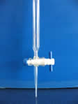 在滴定時,加入的液體量不必正好落于刻度線上,只要能正確的讀取溶液的量即可。實驗時將滴定前管內(nèi)液體的量減去滴定后管內(nèi)液體的存量即為滴定溶液的用量。底部的開關可有效的控制滴定液的流速,使滴定完全時,可適時地停止滴定液流入其下的錐形瓶中。在遠離滴定終點時可快速的添加滴定液,節(jié)省實驗所需的時間。