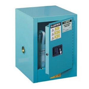 SureGrip®EX鋼制腐蝕性工作臺式安全柜;4加侖;帶一塊擱板;單門;手動關(guān)閉式。