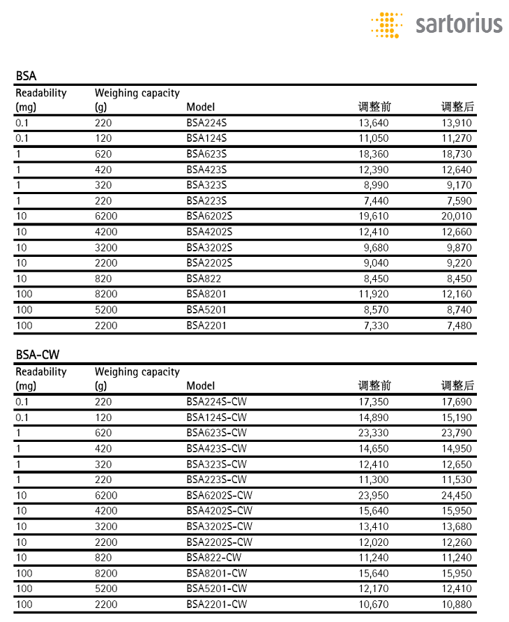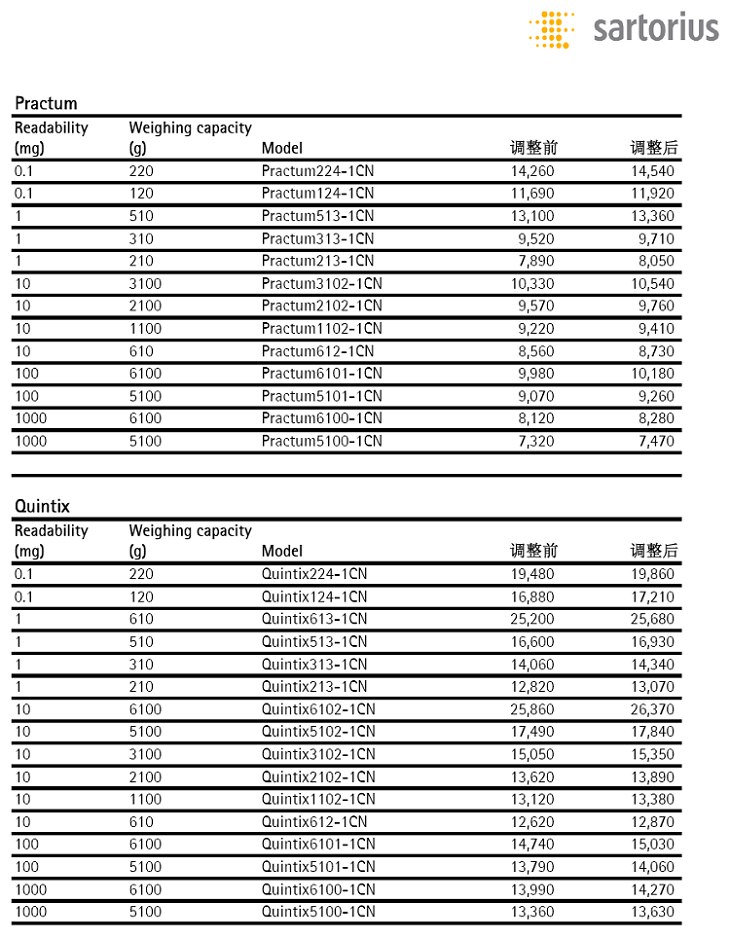賽多利斯天平2016年11月15日開始執(zhí)行新價格,價格表如下: