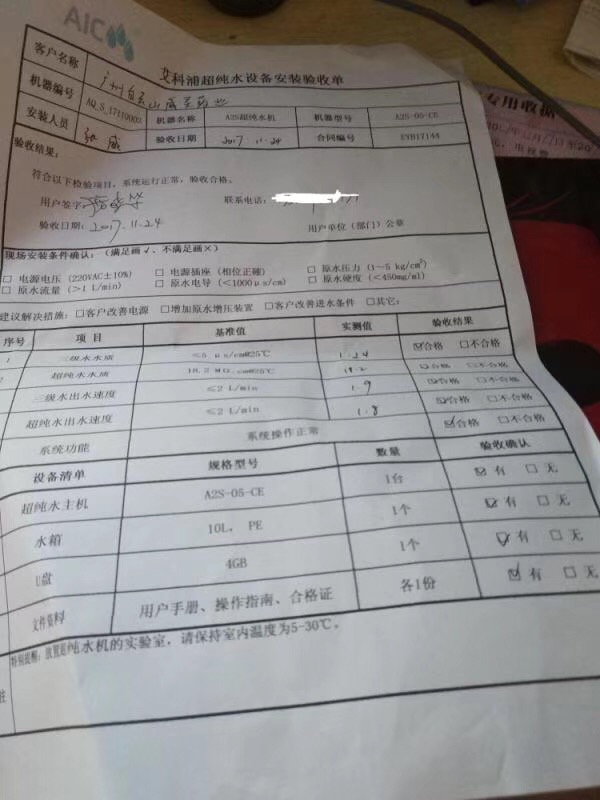 1. 超純水電阻率(25℃):18.2 MΩ.cm