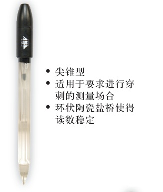 2. 可以刺穿樣品進(jìn)行PH值測(cè)量的針刺型PH電極(采用高強(qiáng)度尖錐型球泡);