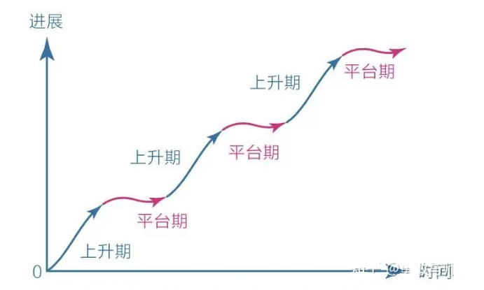 4、平臺期:學習的進展和時間關(guān)系并不是我們想象中的那種線性關(guān)系,而是呈現(xiàn)一種波浪式上升曲線;我們肯定有這樣的感受,剛開始的時候進步很快,然后會變慢,進入一個平臺期。在平臺期 我們可能付出了大量的努力,但看起來毫無進步,甚至可能退步,不過這僅僅是一個假象。因為大腦中的神經(jīng)元細胞仍然在不停的被鞏固,到某一節(jié)后,就會進入下一個快速上升階段。
