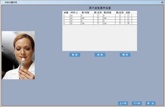完成分析條件設(shè)置后(進(jìn)樣方式選擇“手動(dòng)”)時(shí),,按“下一步”進(jìn)入“蒸氣發(fā)生工作程序”窗口,如下圖所示: