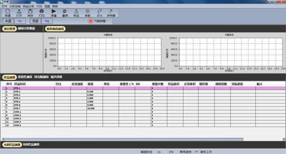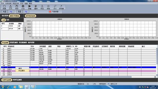 將執(zhí)行測量操作,按照編制的測量程序一一測量,從樣品空白測量開始,然后是標(biāo)準(zhǔn)曲線測量,測量過程中可以執(zhí)行“暫!被颉巴V埂辈僮。