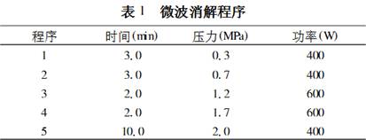 土壤微波消解條件確定采用微波消解儀消解土壤,在210MPa下消解10min,如表1所示。