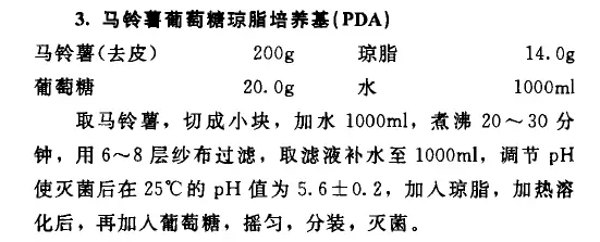 PDA培養(yǎng)基、麥康凱瓊脂培養(yǎng)基、澳化十六烷基三甲銨瓊脂培養(yǎng)基、甘露醇氯化鈉瓊脂培養(yǎng)基、哥倫比亞瓊脂培養(yǎng)基均要求:使滅菌后在25℃的pH值為某一數(shù)值。