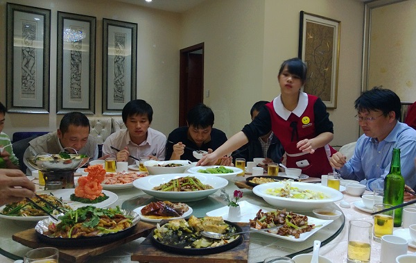 2013年12月12日晚,由賽多利斯南方區(qū)經(jīng)理崔巖先生舉辦晚宴,右一為崔巖經(jīng)理;左二為授科儀器的李魁工程師,左三為授科儀器的林俊模工程師